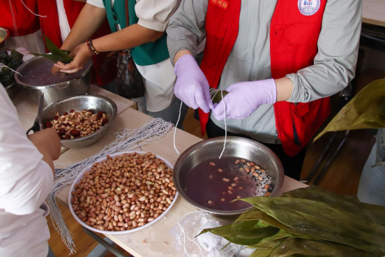 活动现场,志愿者们与社区居民围坐一堂,共同体验包粽子的乐趣。折粽叶、填糯米、裹粽子,一个个饱满的粽子在大家手中诞生。清香的粽叶,香甜的糯米,不仅承载着传统文化的韵味,更传递着邻里之间的温暖与关爱。