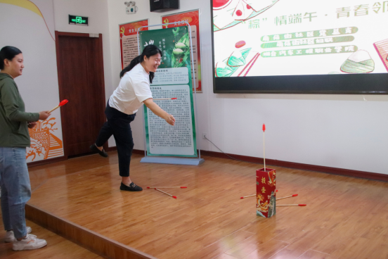 最热闹的莫过于趣味投壶游戏。社区居民和志愿者们分组比拼,箭矢入壶的瞬间,欢呼声此起彼伏。“小伙子,你这准头可以啊,是不是练过?”社区阿姨拍了拍志愿者的肩膀,现场其乐融融。 志愿者与社区居民们的欢笑声交织在一起,勾勒出一幅温馨和谐的邻里画卷。