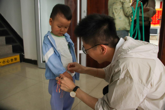 除了包粽子,志愿者们还准备了丰富多彩的手工活动。编五彩绳、做香囊,大家在动手实践中感受端午节的民俗风情。巧手编织的五彩绳,承载着祈福纳祥的美好寓意;香囊中散发着艾草的清香,驱蚊避虫,寄托着对健康的祝愿。刚学会编五彩绳的小朋友们兴奋地举着自己的“作品”,跑过来问志愿者指导老师:“哥哥,这个可以带帮我戴上吗,奶奶说戴上五彩绳可以保平安。”