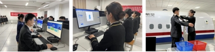 为满足民航职业对人才的严格要求,提高学生的顶岗实习能力,我系精心打造职业技能实训基地。现建有1000平方米的航空服务实训中心,拥有A320静态模拟舱、A320舱门模拟器、A320灭火模拟器、机上特情处置VR实训室、机场地面服务实训室、安检实训室、危险品货运实训室、电子客票销售实训室、航空救护实训室、化妆实训室、形体训练室、体能训练室等多个专业实训室,通过专业技能学习缩短民航类等专业学生的上岗适应期,大大提升了就业竞争力。